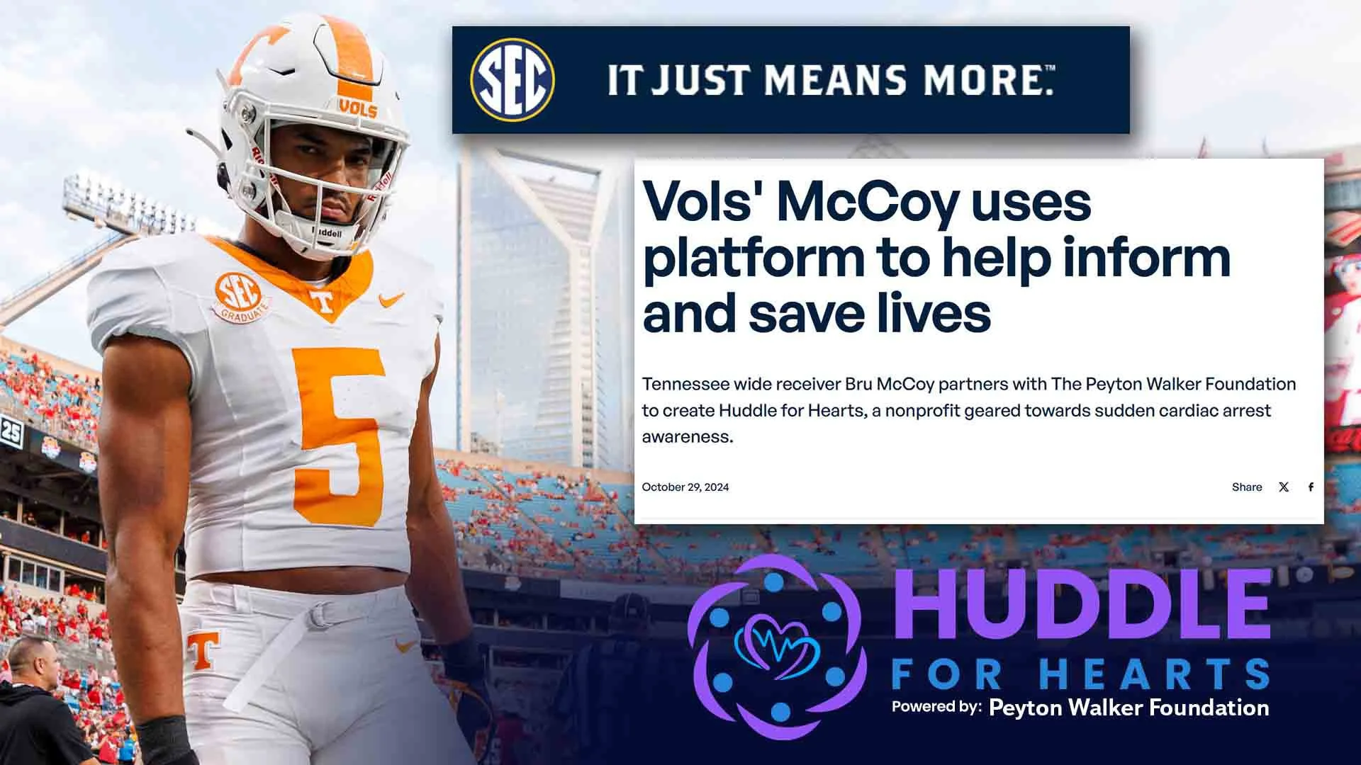 Huddle For Hearts® is a national life-saving initiative from The Peyton Walker Foundation and collegiate/high school athletes dedicated to fighting Sudden Cardiac Arrest.